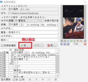 ③ 若文档格式正确则会出现完整的书名、作者封面和目录。确认即可。